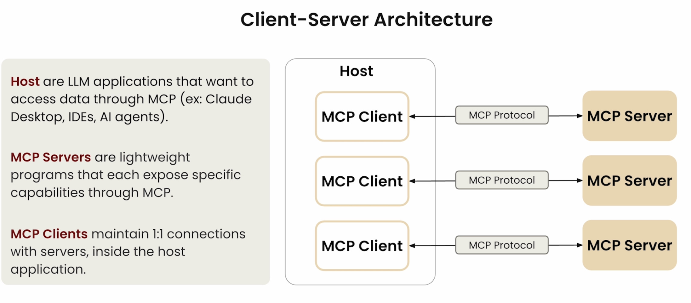 Here’s how it works when your agent or application becomes an MCP Host and interacts with MCP Servers: or example: