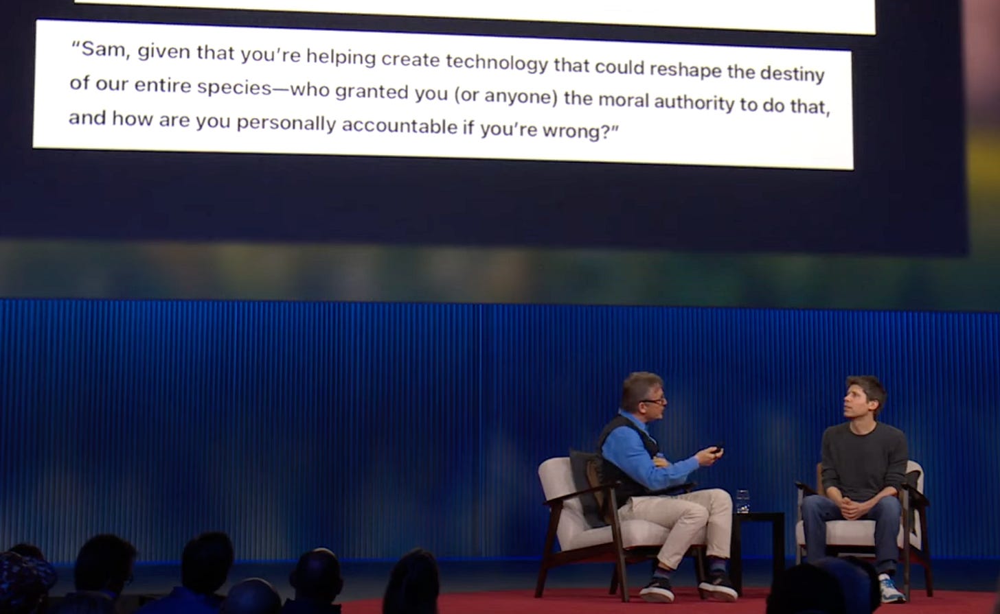 When it comes to who has the moral authority to decide what AI should and shouldn’t do, Sam mentioned that unlike many times in the history when decisions were made by small groups, AI can actually help us learn the values and preferences that represent what the entire world wants. In other words, direction and guardrails should come from a broader societal input.